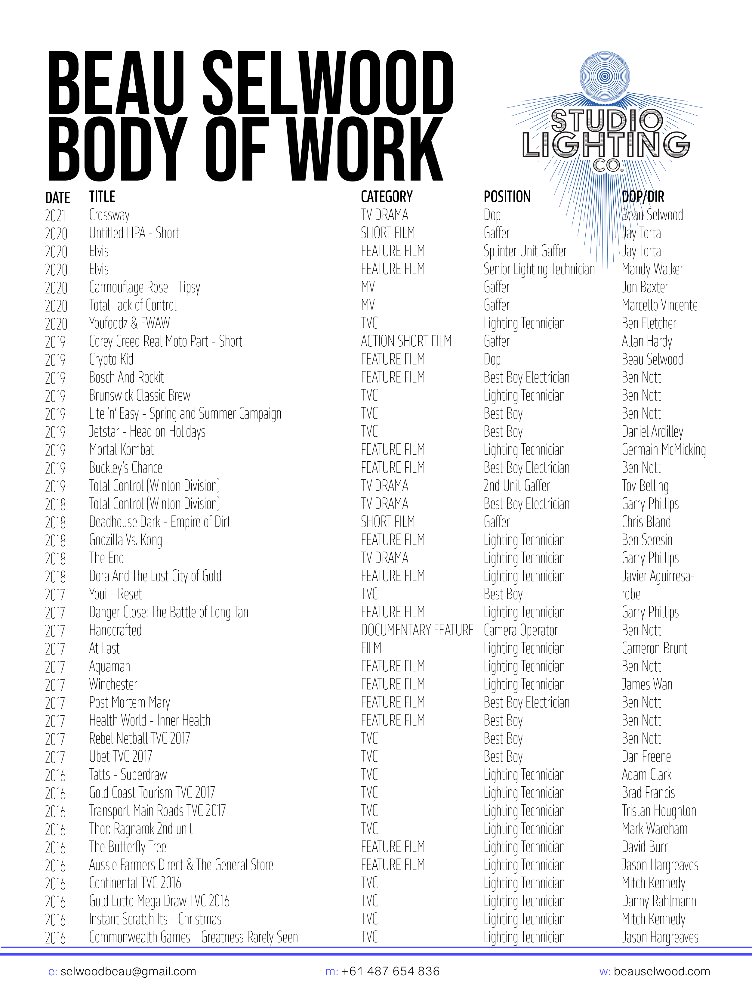 Gaffer/Cinematographer